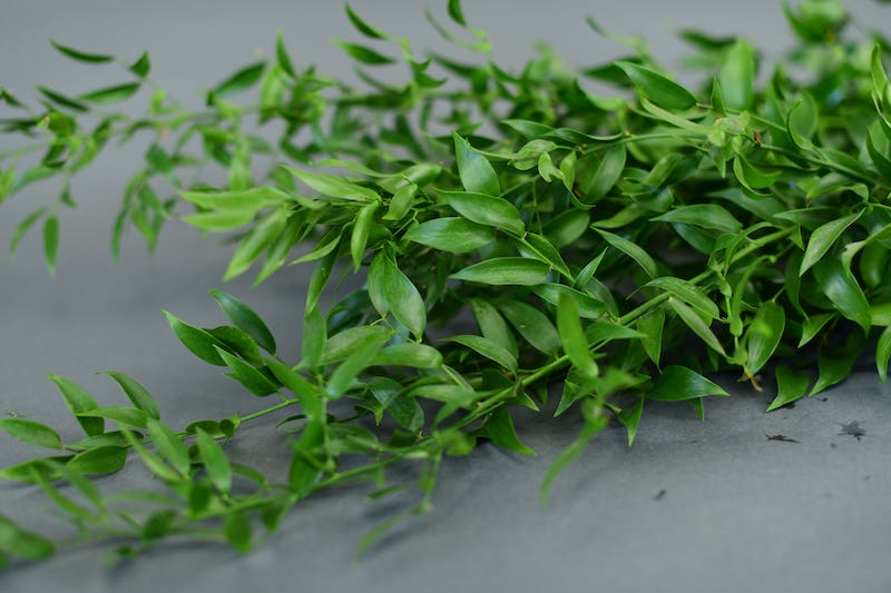 European & Australian Greens Nigra, Varigated Phytosphorum Ruscus, italian, 150 g and 200 g Ruscus, Italian, SHORT and alternate sizes available upon request Safari Sunset Steelgrass